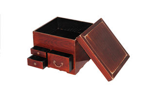 一般的には、中に飯椀・汁椀・茶碗・小皿・箸が入っている。