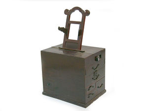 化粧道具を入れる手箱(結髪・理容・化粧道具入れとして使われた箱)と鏡かけを一緒にした今の形に近い鏡台は室町時代に出現した。