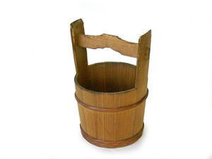 一般的に井戸から炊事場に水を運ぶときに用いた取っ手のついた桶で、どこの家庭でも必ず持っていた。