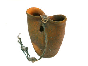 ハゼ壺漁に使う壺。ハゼ壺漁は海岸近くに産卵に来るハゼを捕る漁法で、つがいで物の下を巣穴として産卵を行うハゼの習性を利用している。
